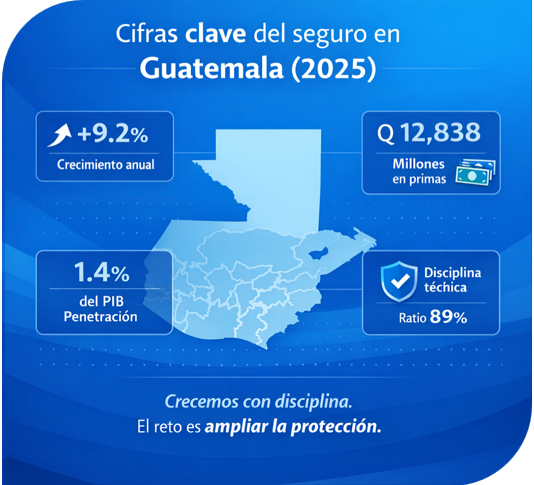 El desempeño agregado de 2025 muestra un mercado con un crecimiento anual de 9.2% y primas totales por Q 12,838 millones. En resultados, se reportan Q 871 millones, acompañados de un ratio combinado de 89%, indicador que normalmente se asocia con disciplina técnica. En términos prácticos, esto significa que el sector está cobrando adecuadamente, controlando costos y gestionando siniestros de forma razonable. Dicho de manera sencilla, el mercado no solo creció, sino que lo hizo con un nivel de orden que contribuye a sostener su capacidad de pago y su estabilidad.